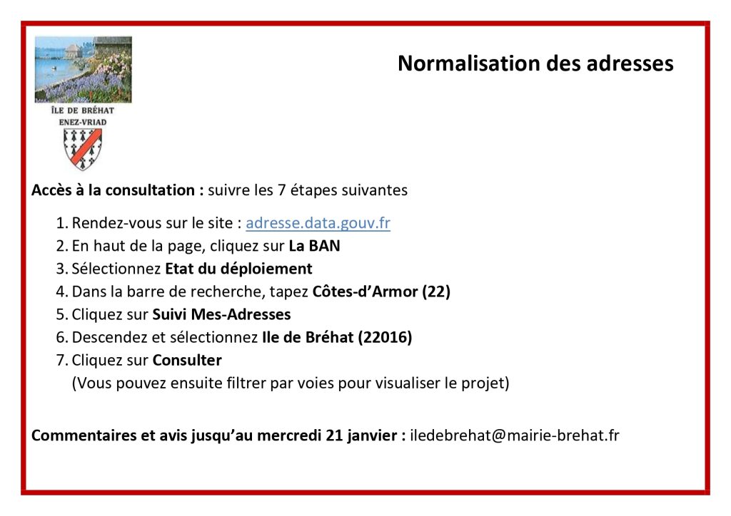 CONSULTATION du lundi 22 décembre 2025 au lundi 05 janvier 2026 Dans le cadre de la normalisation des adresses, un…
