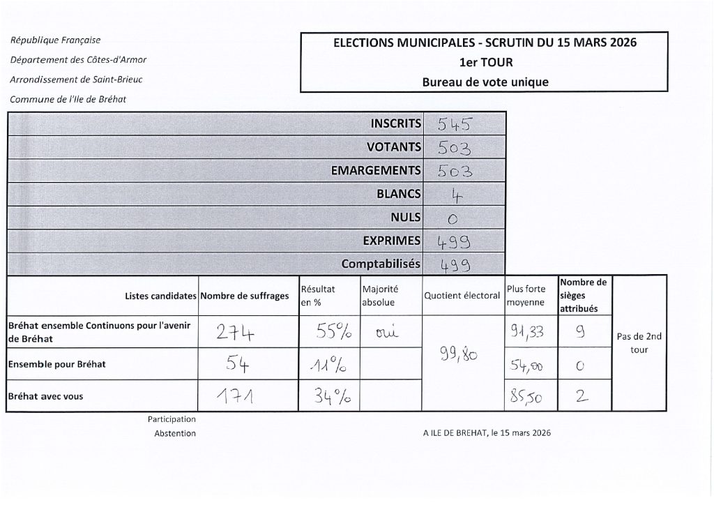 Résultats des élections municipales du 15 mars 2026