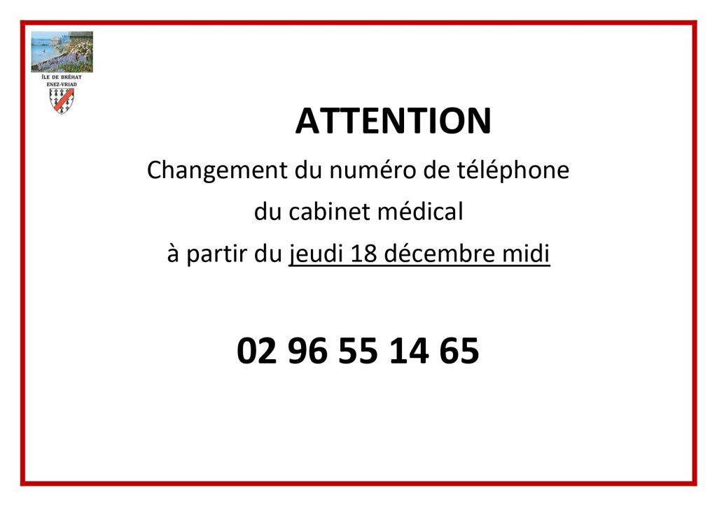 Je vous informe du début de mon activité le 1er décembre 2025 au cabinet médical de Bréhat. Téléphone : 02…